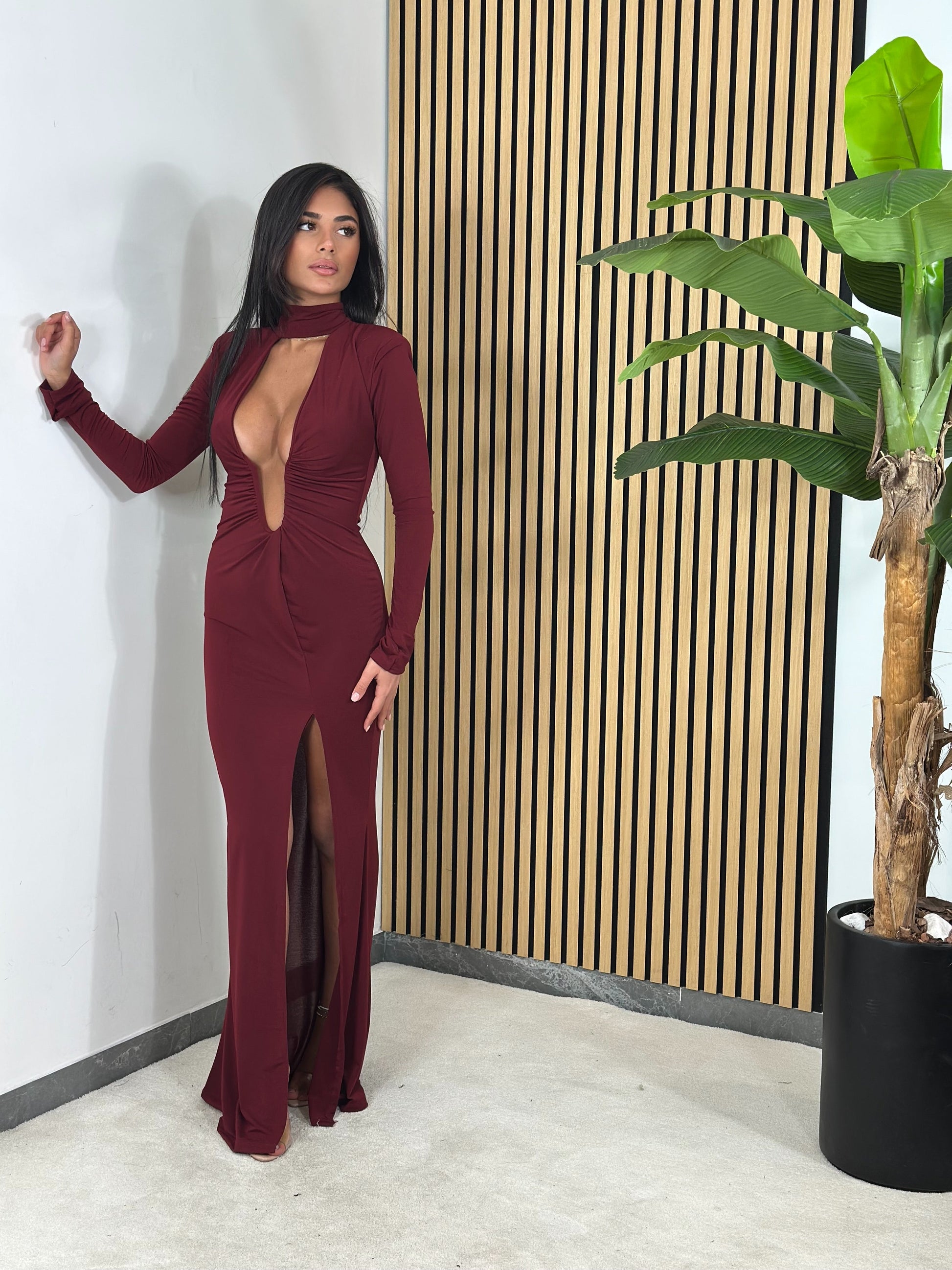 Abito lungo , elasticizzato con scollo