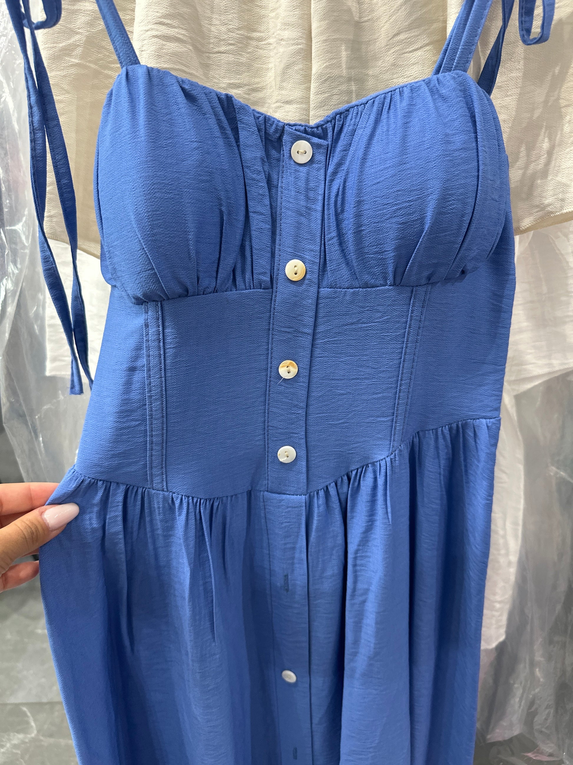Abito in viscosa con bottoncini e corpetto, molla sul retro