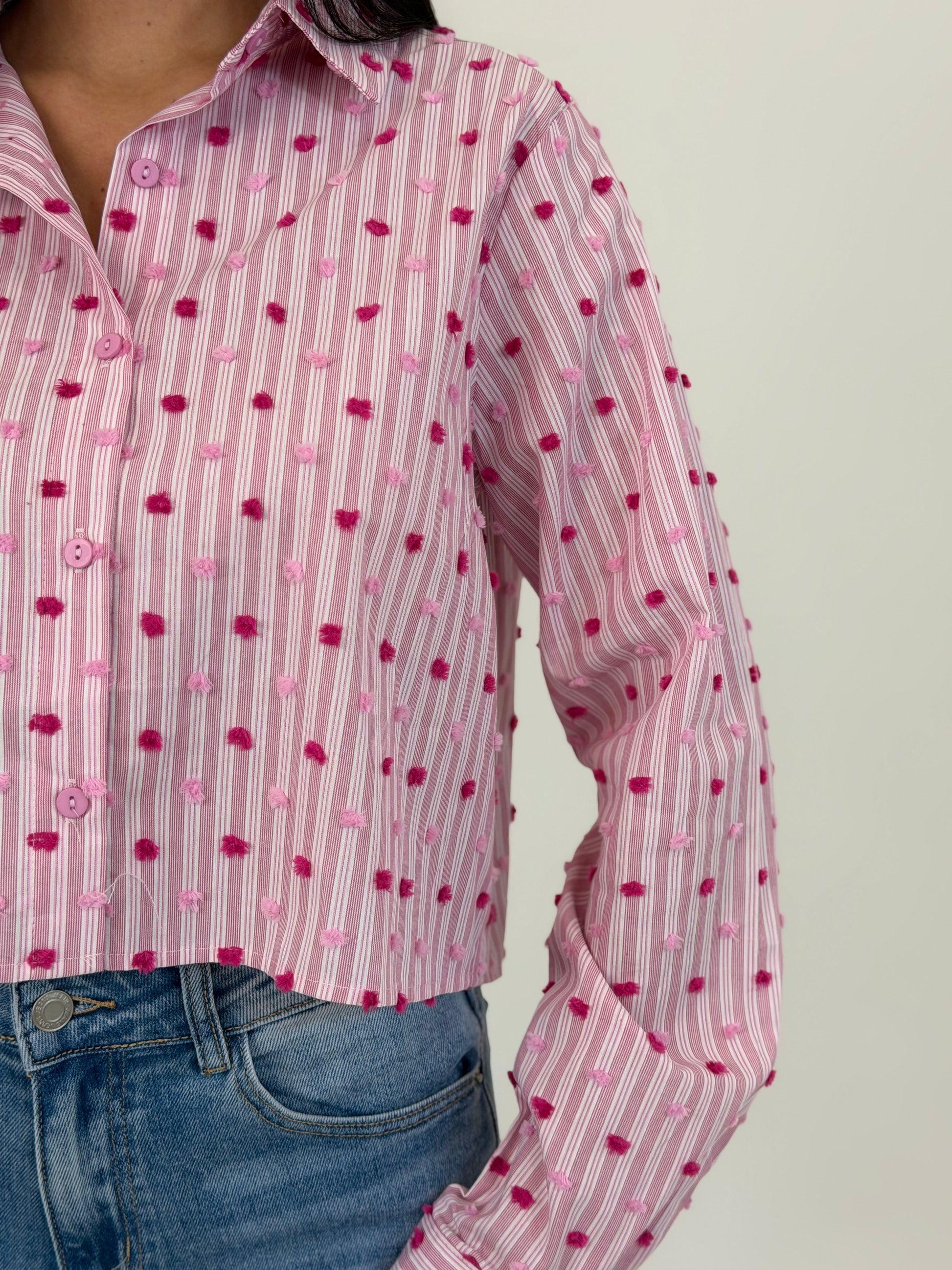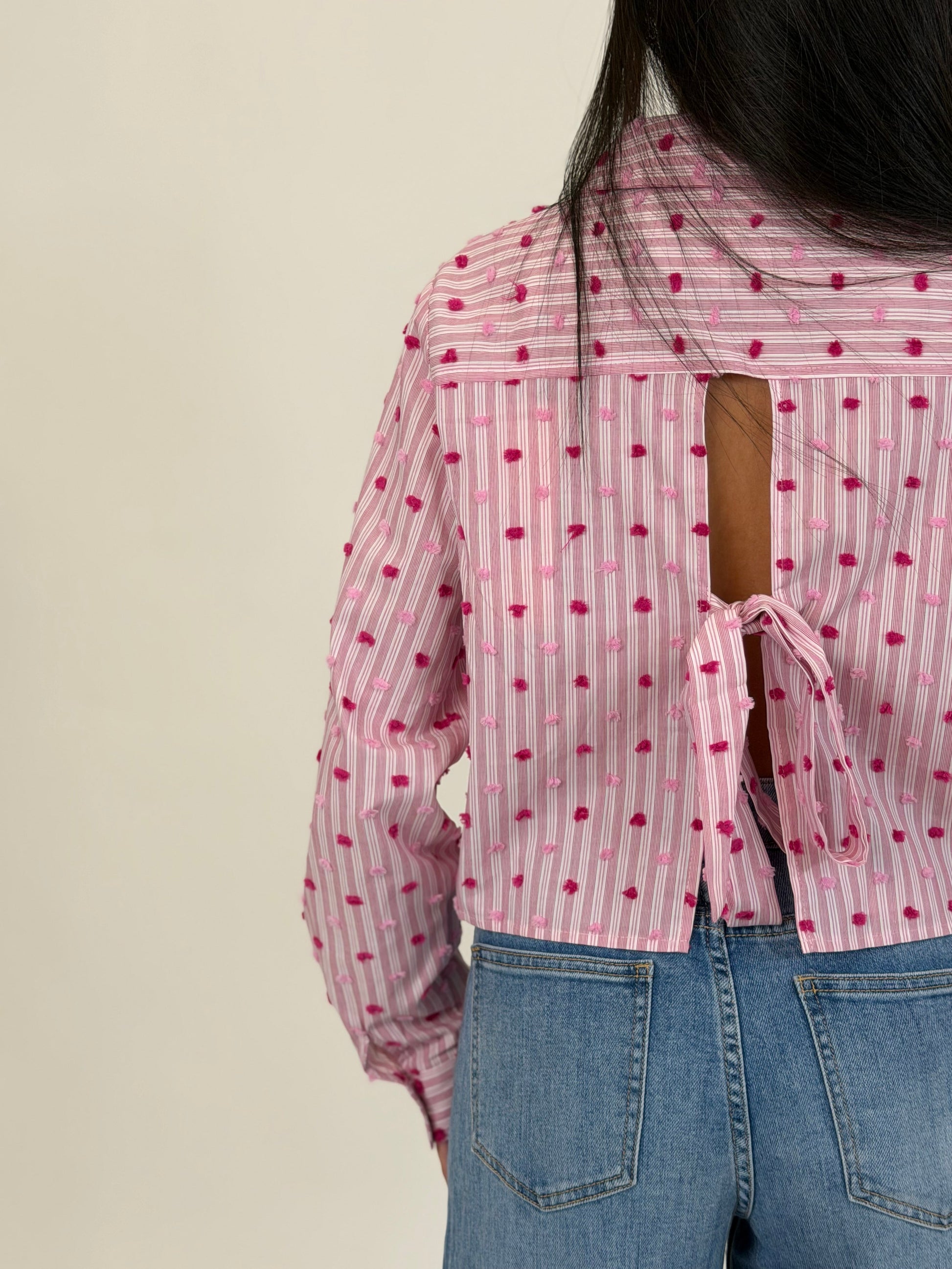Camicia crop a righe e fiocchetto sul retro. Composizione: 100% cotone.